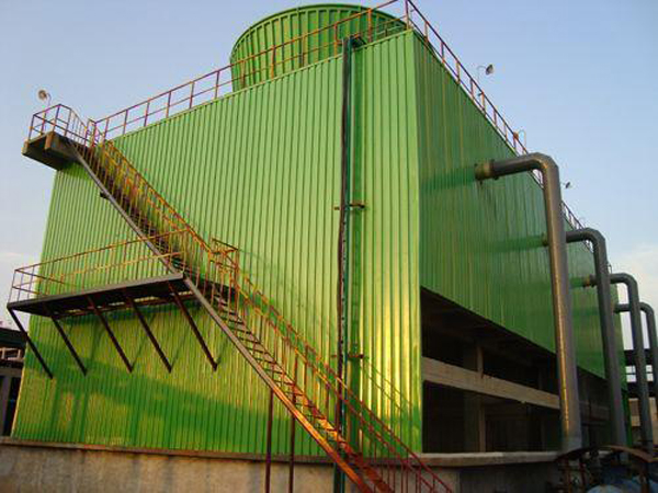 工業生產或製(zhì)冷工藝過程中產(chǎn)生的廢熱,一般要用冷卻水來導(dǎo)走。冷卻(què)塔的作用是將挾帶廢熱(rè)的冷卻水在塔內與空氣進行(háng)熱交換,使廢熱傳輸給空氣並(bìng)散入大氣中。例如:火電廠內,鍋爐將水加熱成高溫高壓蒸汽,推動汽輪機做功使發電機發電,經(jīng)汽(qì)輪機作功(gōng)後(hòu)的廢汽排入冷(lěng)凝器,與冷卻水進行熱交換凝(níng)結成水,再用水泵打回鍋爐循環使用。這一過程中蒸汽的廢熱傳給了冷卻水,使(shǐ)水溫度升(shēng)高,挾帶廢熱的冷卻水,在冷卻塔中將熱量傳遞給空氣,從風筒處(chù)排入大氣環境中。冷卻塔應用範圍:主要應用於空調冷卻係統、冷凍係列、注塑(sù)、製革、發泡、發電、汽輪(lún)機、鋁型材加工、空壓機、工業水冷卻等領域,應用多為空調冷卻、冷凍、塑膠化工(gōng)行業(yè)。