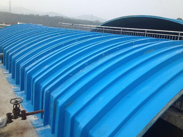 3、輕質高強、安裝方便:玻璃鋼集氣罩比重僅為鋼(gāng)製品(pǐn)的(de)1/3至(zhì)1/4,固化程度高,載荷負重大,強度高,適用於大跨度池體,同時蓋板可分為若(ruò)幹小塊,便於運輸、安裝(zhuāng)。